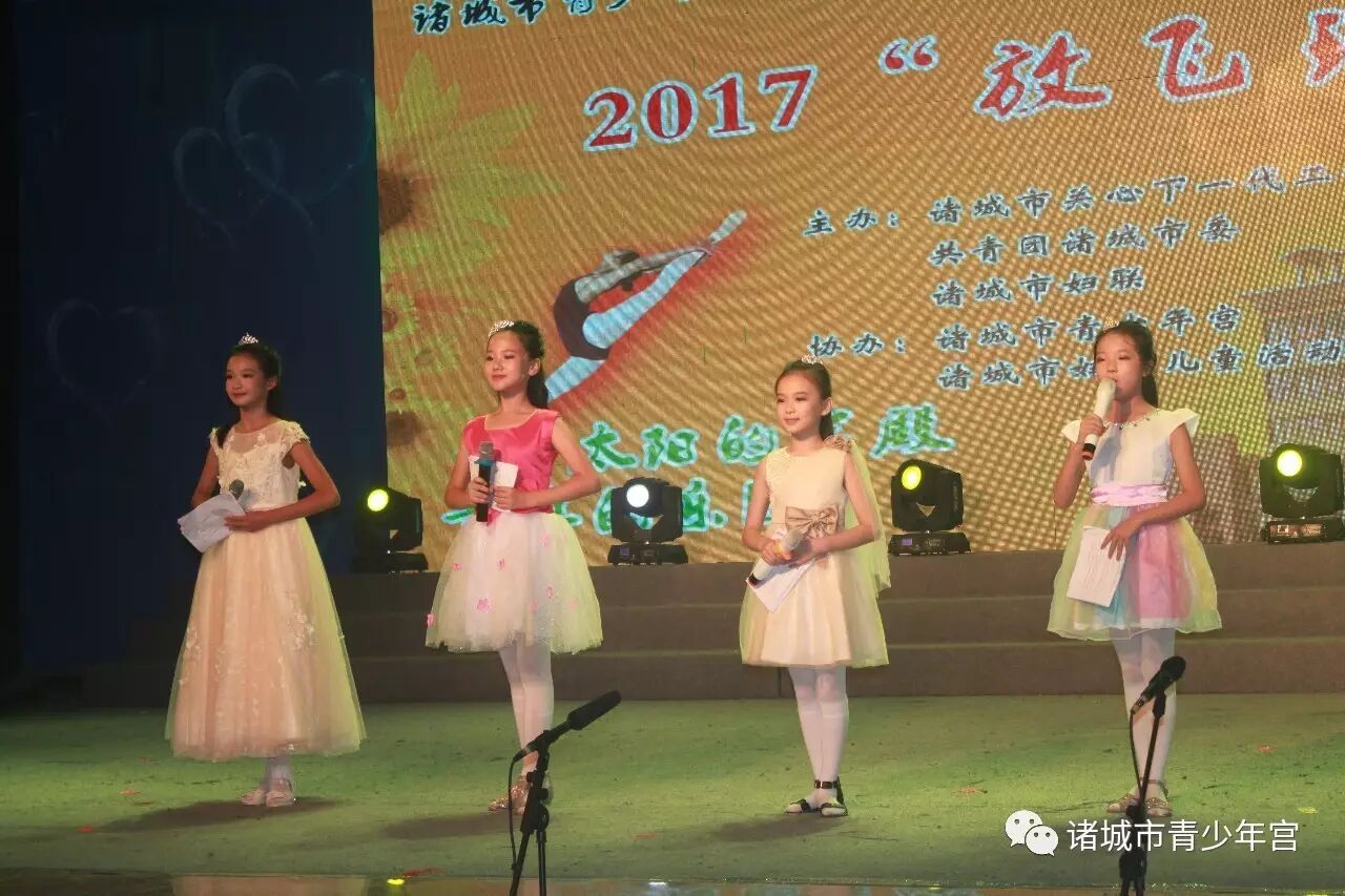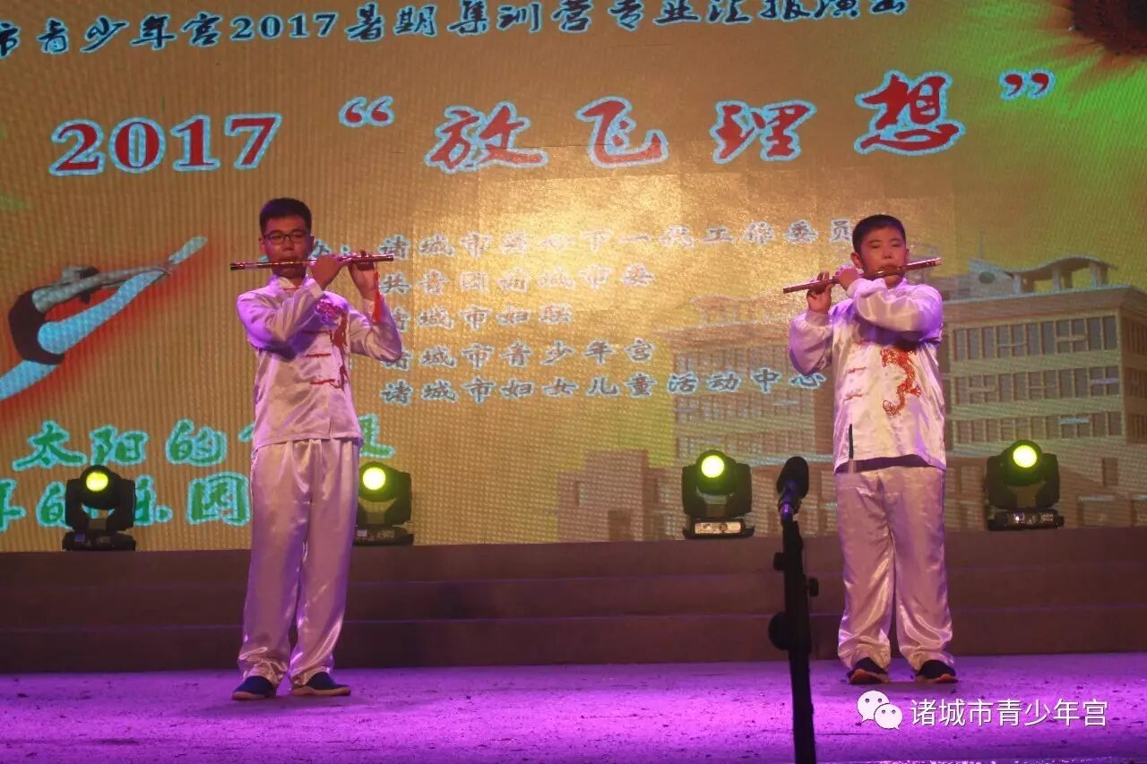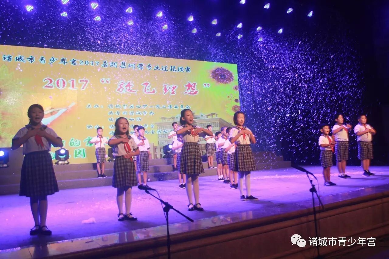 8月14日, 2017“放飞理想”暑假集训营专业汇报演出培训部第一场在市青少年宫剧院举行,本次活动由诸城市关心下一代工作委员会、团市委、市妇联共同主办,市青少年宫和市妇女儿童活动中心协办。本次活动为孩子们搭建了充分展示自我的舞台。孩子们用精彩的表演展现了在青少年宫一个暑假的所学。优美的舞姿、动听的乐曲、激昂的旋律、感人的朗诵,精彩的演出充分展示了市青少年宫的小学员们平常的用功的学习以及对专业的热爱。