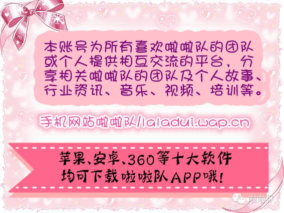 请关注“啦啦队”的微信公众号:join-laladui