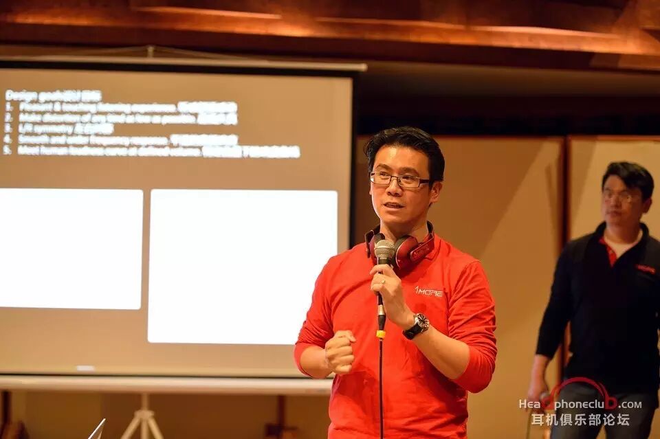 当Luca对产品的音质提出具体的要求后,1MORE的研发团队还需要把Luca的要求付诸实施。在活动的下一个环节中,曾经担任iPod、MacBook、Earpod以及SONY、NOKIA等多款产品扬声器系统开发的1MORE声学总监Gary Chiu博士上场,为现场充满好奇的HiFi玩家介绍了1MORE耳机的客观声学调教部分
