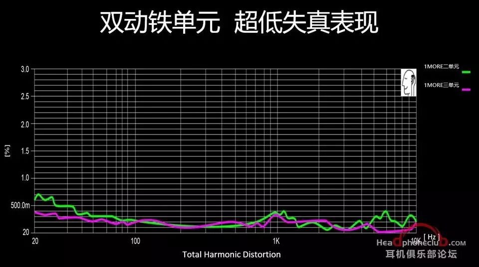 经过1MORE声学团队的精心调教,三单元耳机拥有全频带低于0.5%失真表现