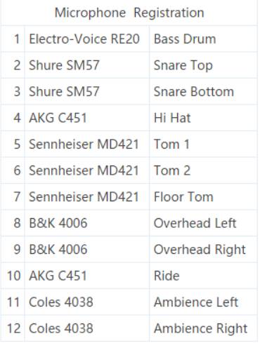 LucaBignardi录制的1MORE SONG架子鼓部分干声与缩混对比,及现场使用的麦克风信息: