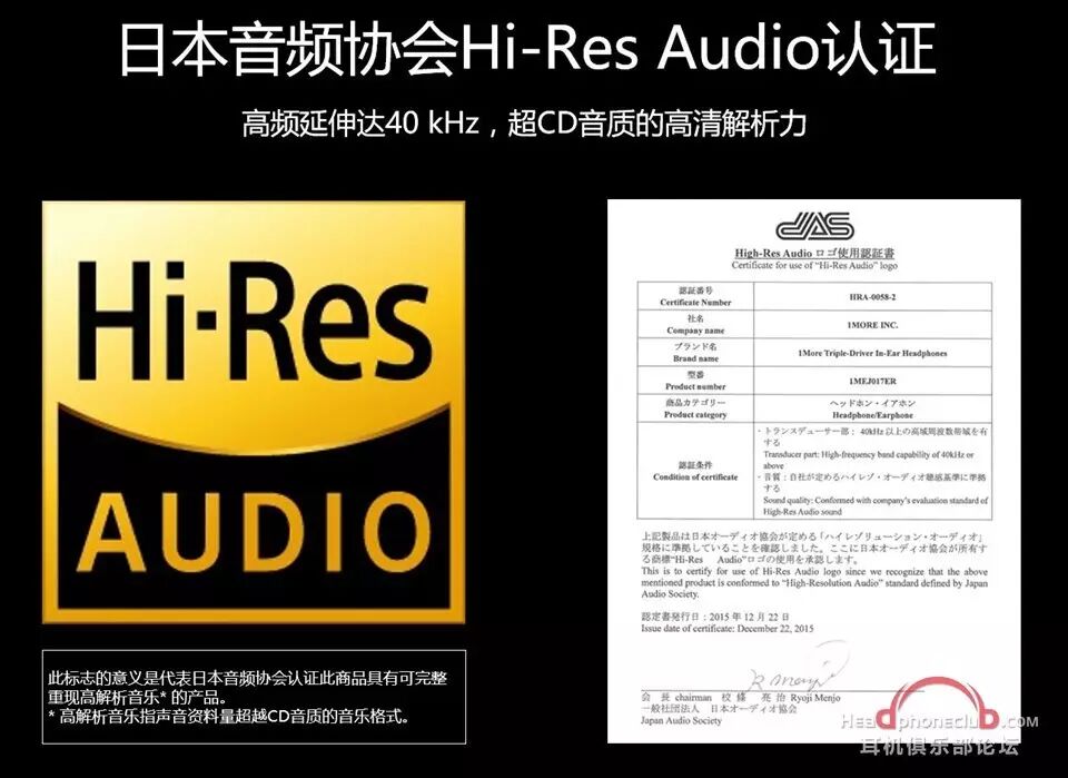 日本音频协会认证1MORE E1001三单元动铁耳机为Hi-ResAudio产品