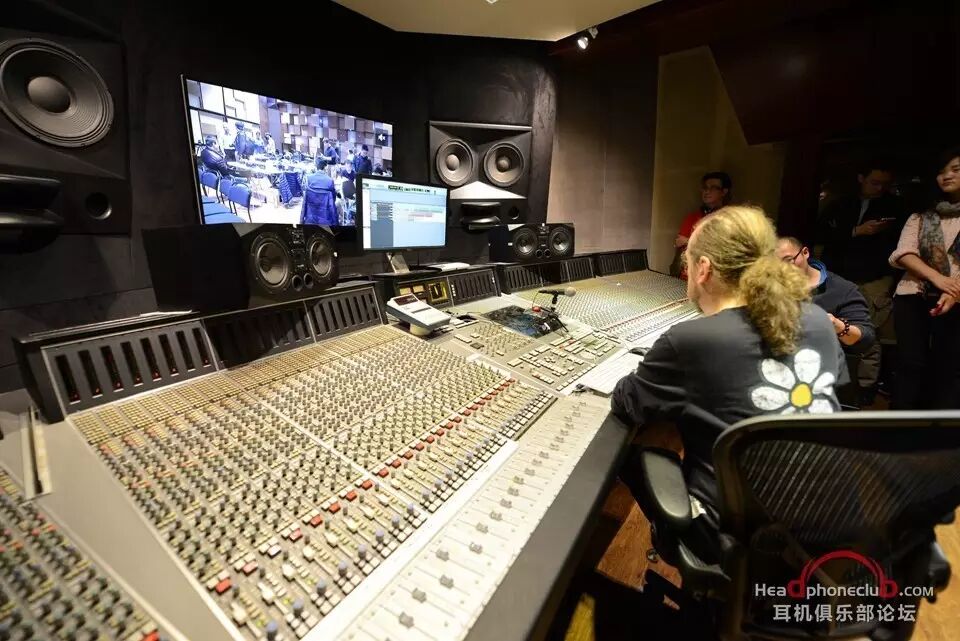 与主录音棚隔窗相望的是面积达35平米,高3.5米的主控制室(也是本次活动中Luca做混音演示的控制室),主要针对高标准流行乐和管弦乐队同期录音设计,以Pro Tools HD3系统为核心,配备了国内罕见的美国定制Augspurger DSP主监听系统与Millennia、Neve、Manley、Lexicon、Bricasti等一系列顶级品牌的话放及周边设备,不过主控制室里最引人注目的当属售价数百万人民币的80通道SSL 9080J模拟调音台。在TTL的其他5间控制室、编曲室中,还云集了更多发烧友所熟知的ADAM S3A、Barefoot MM27、Tannoy Super Red、KRK E8B、ATC150等名器……