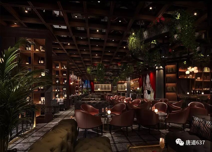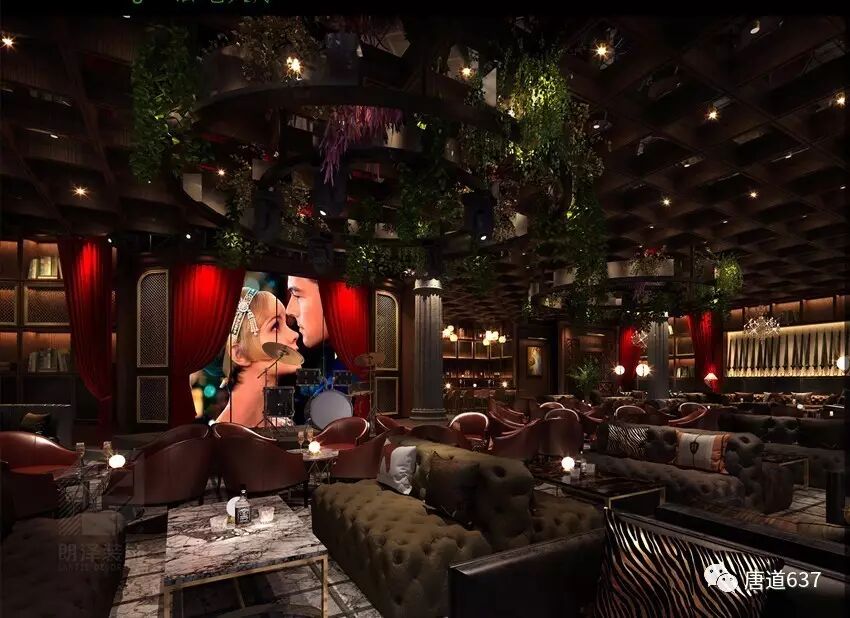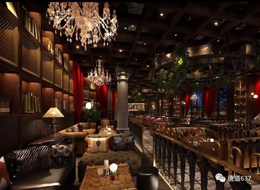 整个酒廊的灯光和沙发都以红黄二色为主,