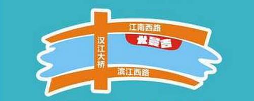 天汉大道—过天汉大桥—右转进入江南西路—向前直行800米即到