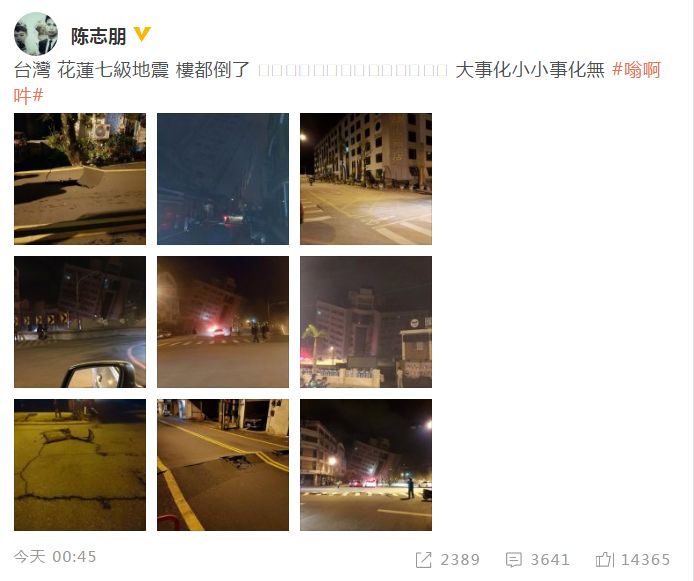 突如其来的地震牵动着两岸的心,许多明星在社交媒体发声为花莲祈福。