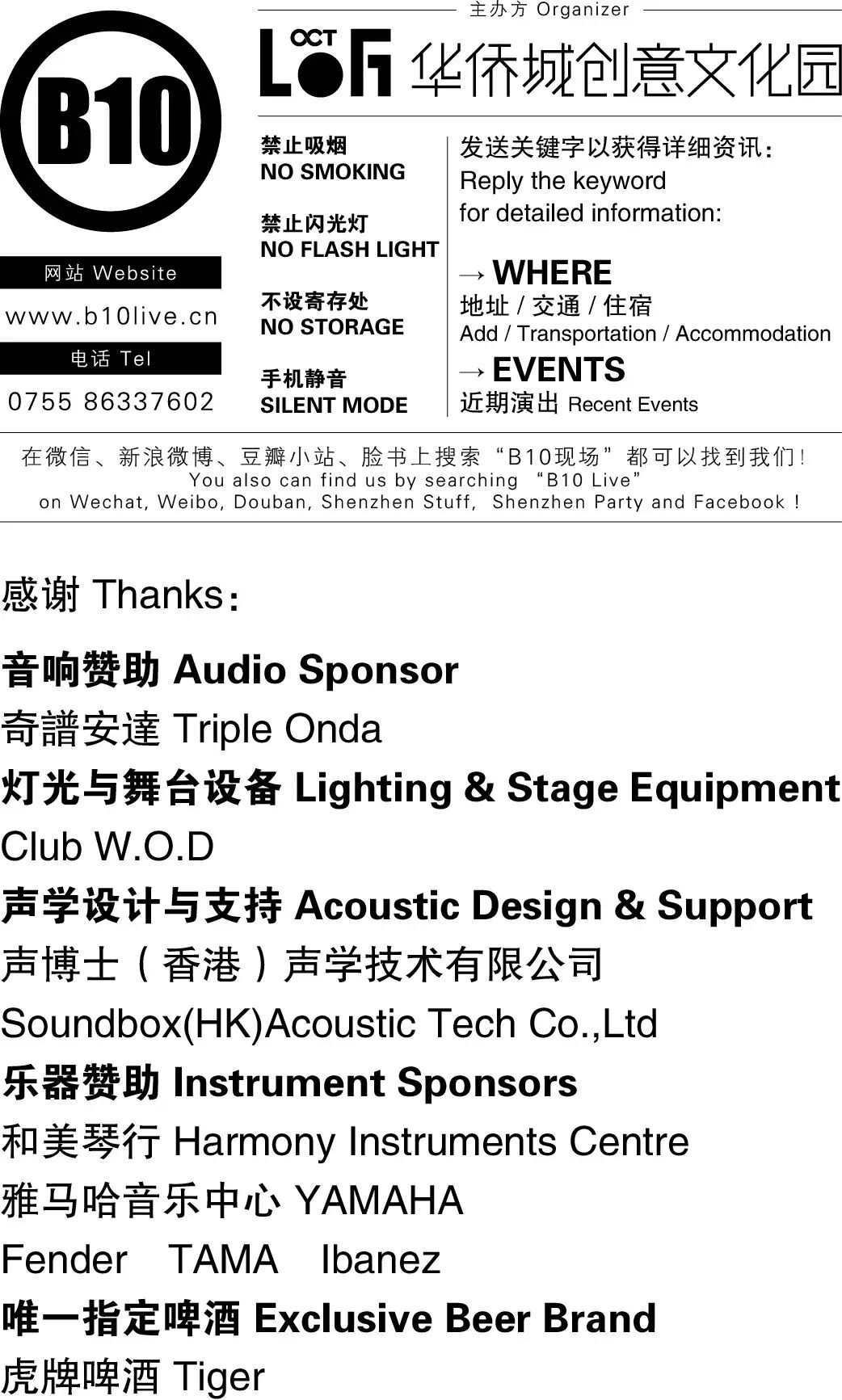 Please send the following information to midori@b10live.cn at least ONE DAY before the concert: