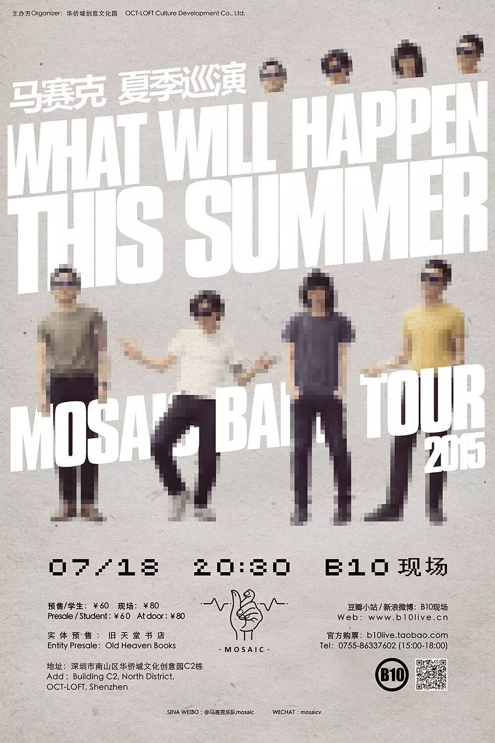 2009年第一届热波音乐节现场上,一个叫做“马赛克”的乐队用音乐点燃了那些被太阳晒得有点晕的人们,掀起了大牌艺人出场前的第一波高潮。他们在台上疯狂地舞动,主唱兴奋地表演几乎要把自己弄得虚脱。而优美的旋律和欢乐的节奏,彻底激发出观众热情。我仿佛看到了一个属于他们的八十年代在慢慢成型,那种激动至今还保留在心中。