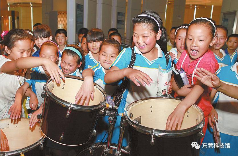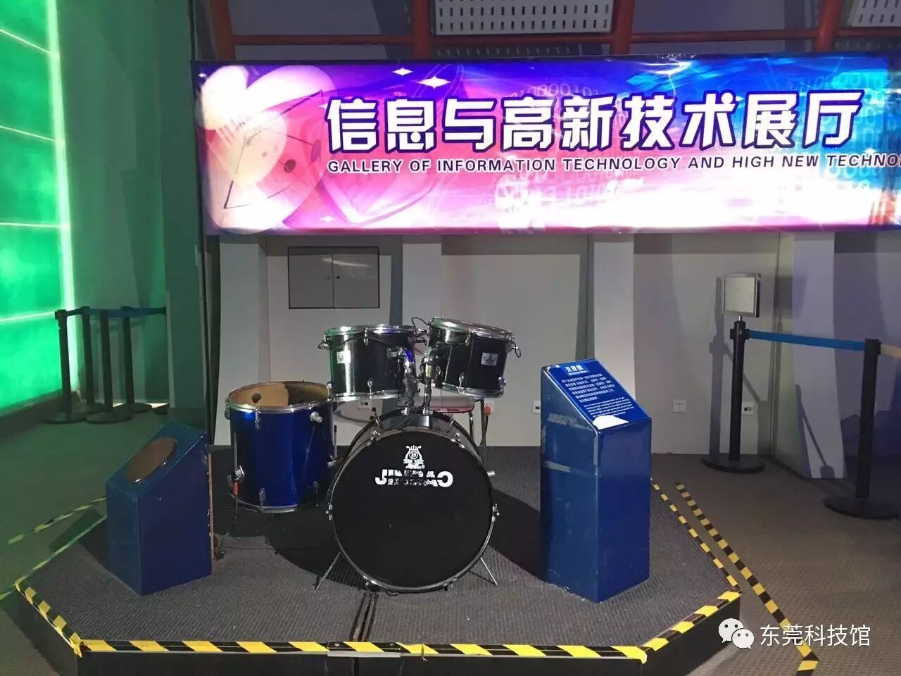 因为每个无皮鼓中装有一组光发射和光敏接受装置(光电开关),当用手(或脚)作敲鼓状遮挡住光发射(或接受)端时,接受端接受不到光信号,光电开关就会驱动相应的录有鼓声胡语音块工作,发出相应的鼓声。是不是很神奇呢?快来科技馆做一回帅气的摇滚鼓手吧!