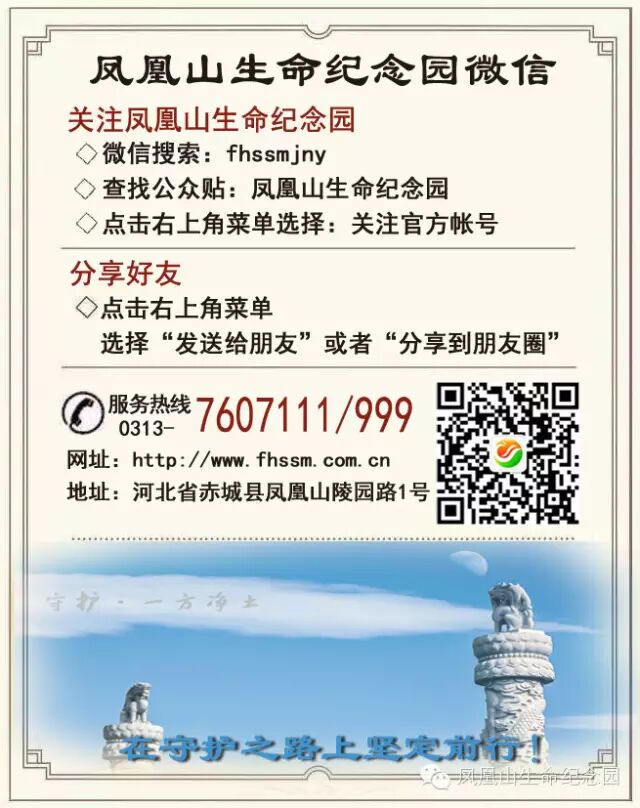 新朋友:点击上面蓝色“凤凰山生命纪念园”一键关注