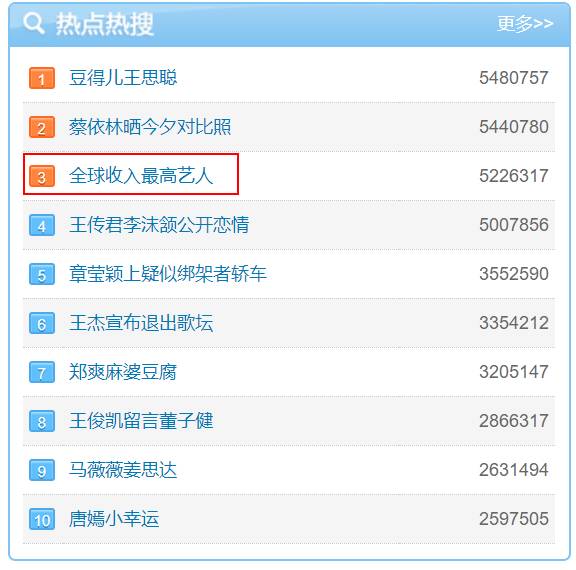 近日刚刚发布的全球收入最高艺人排行榜引来了网友热议。