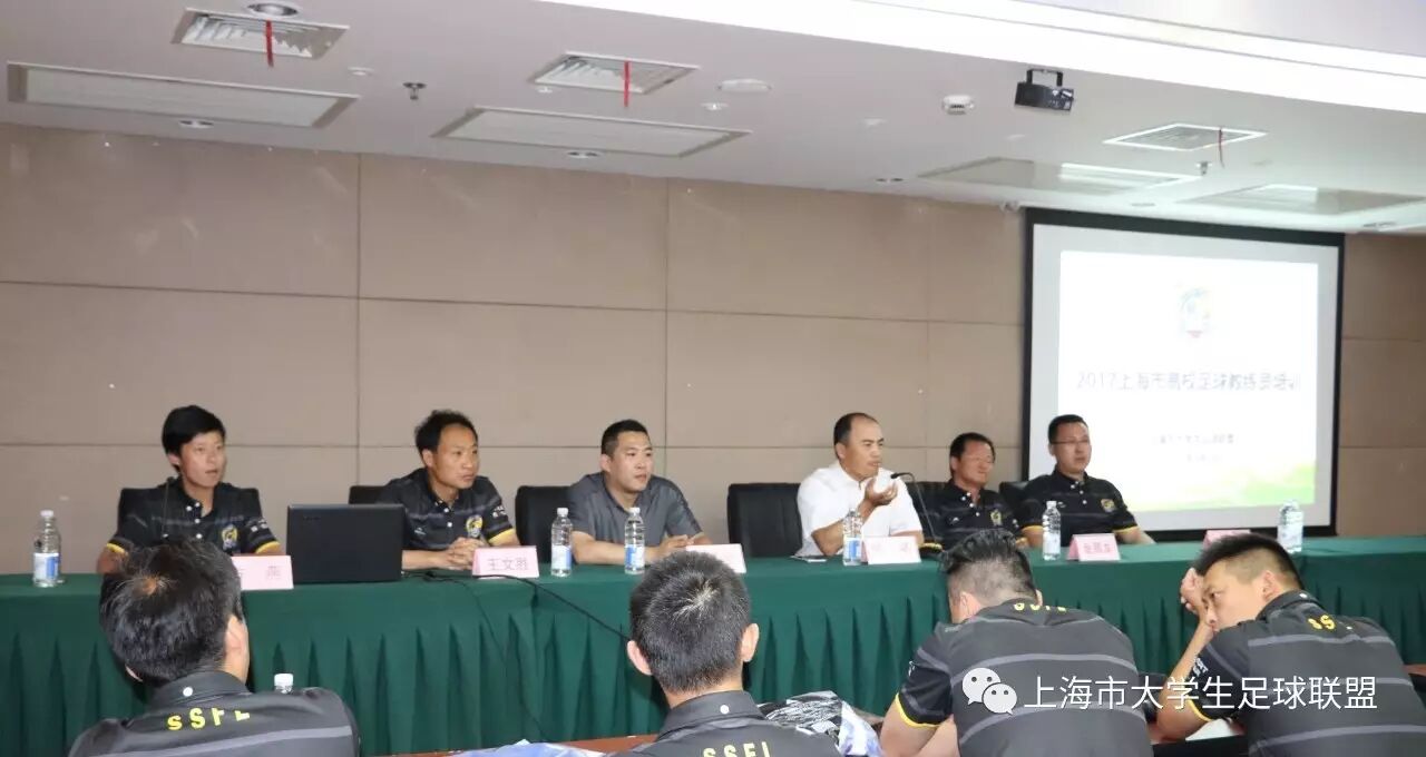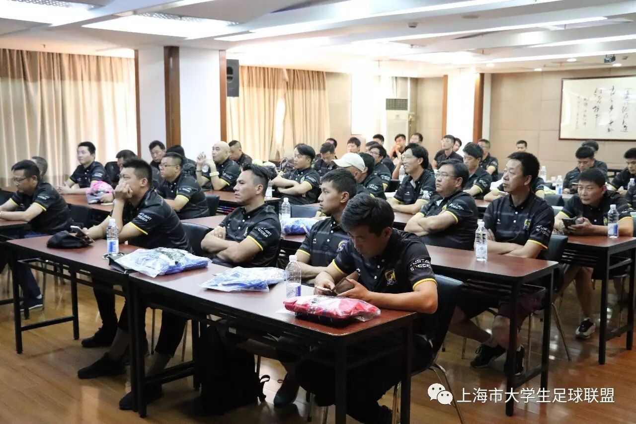 昨天,2017年上海市高校足球教练员培训班在上海大学如期举办。本届培训班由上海市大学生足球联盟主办,、、上海市大学生足球联盟督导部主任金昌龙、上海市大学生足球联盟裁委会主任陶然成、上海市大学生足球联盟竞赛部王文胜等和来自全市高校的教练员代表一起参加了培训班。