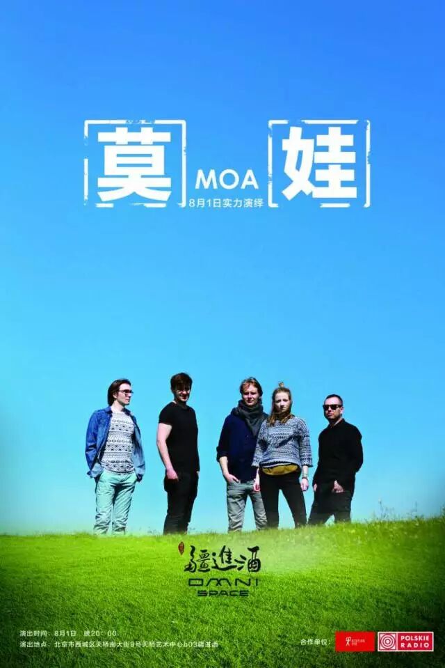 各位乐迷,如果你们想现场感受波兰本土独立摇滚创作风貌,那就准备观看这支来自波兰的知名的演出——MOA乐队(中文译名“莫娃”)的演出。为了让北京的观众有机会了解波兰现代音乐的魅力及深入推动波中两国人民的文化交流,我们将与波兰广播电台合作,呈现给大家一场特殊的音乐会! 让大家摇滚起来吧!