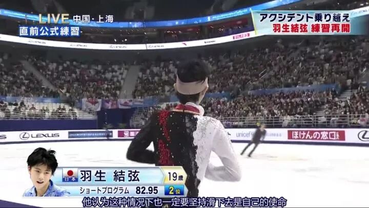 羽生结弦包扎好以后,教练劝说他考虑退赛,但是“使命感”一词自从4岁便烙印在羽生结弦的血液之中,他狠狠地甩了一句“跳”就上场了。