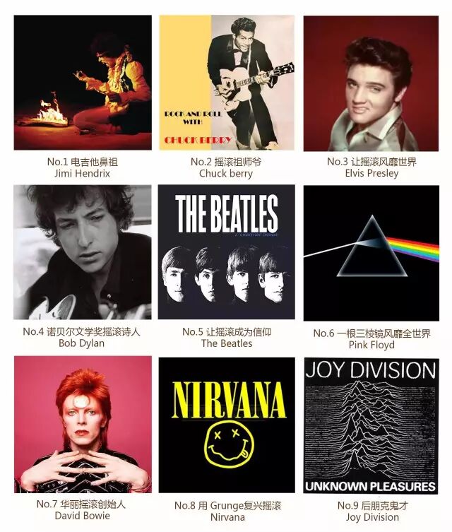 视频的内容结合九位代表的经典摇滚视觉Icon,