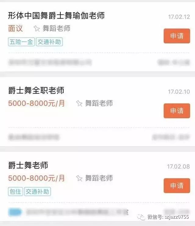 以上是前程无忧上爵士舞蹈老师的招聘信息