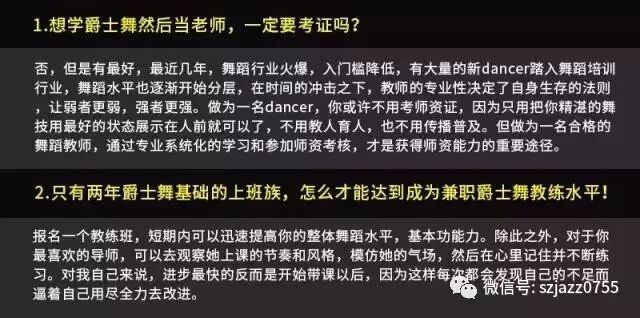 2、在深圳舞蹈网培训基地参加过爵士舞教练班课程的学员报考初级资格考试,享受1280元特优价,名额有限,先报先得;