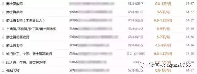 以上是58同城上爵士舞蹈老师的招聘信息