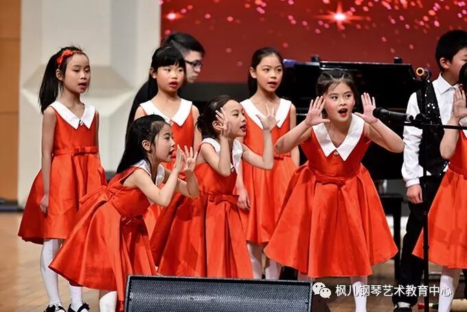 枫儿艺术的孩子们不仅会钢琴,还能歌善舞,女生表演唱《成都》,《苗家小阿妹》,男生独唱《我是一只小小鸟》和充满动感的爵士舞《hoilday》赢得了观众们的好评。