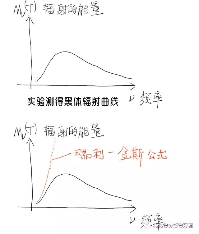 之后科学家对一些近似黑体的物体进行实验,从而测得了黑体辐射的实验曲线。但是还缺少对这个曲线的科学解释,之后许多物理学家按经典物理理论提出了自己的公式,其中最著名的要数瑞利-金斯公式,这一公式在低频率下与实验符合得很好,可是一旦频率升高,计算值将不断升高而趋于无限大,由于趋近无限大时该频率属于紫外线范围,固又称——紫外灾难。
