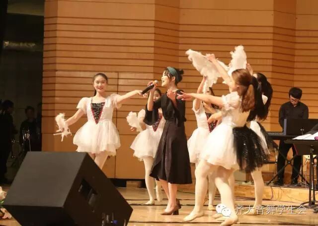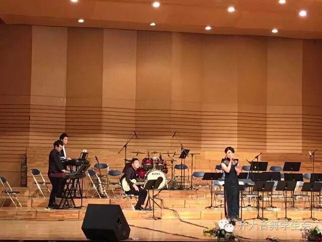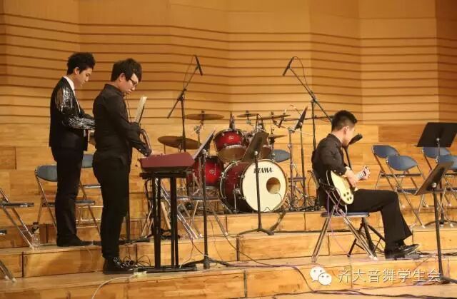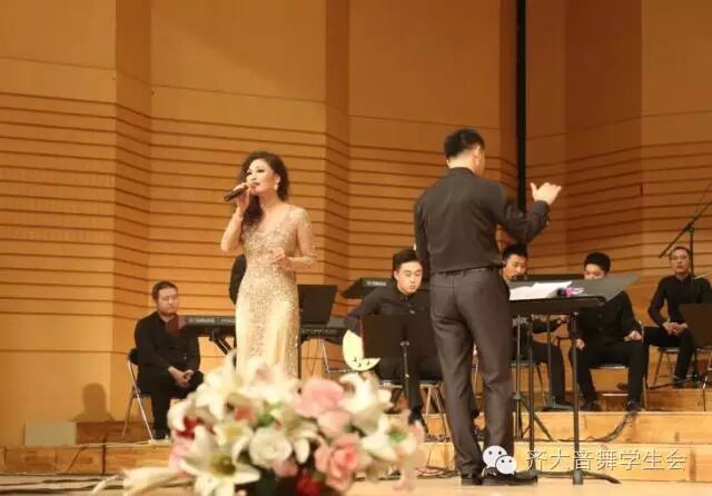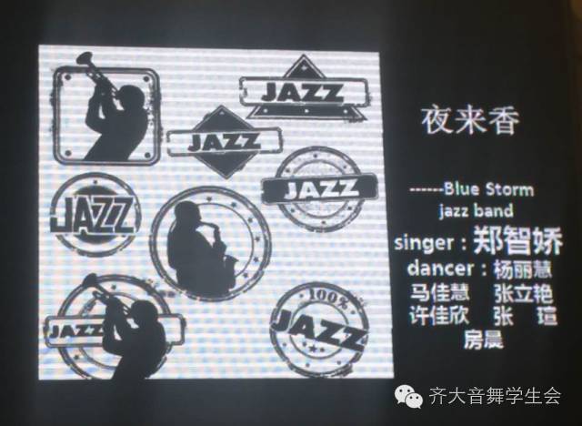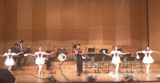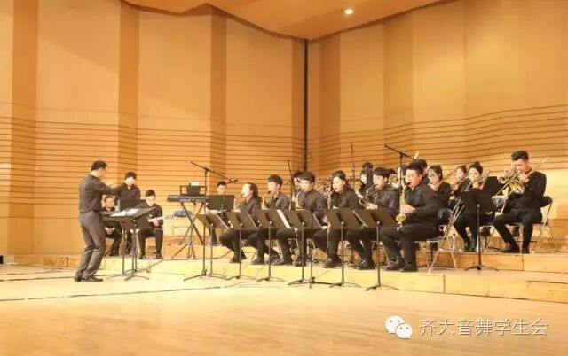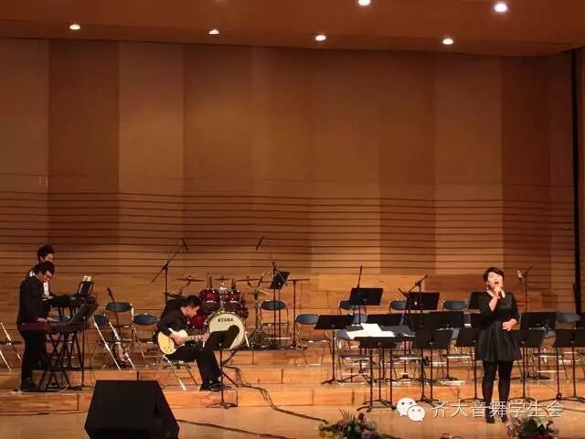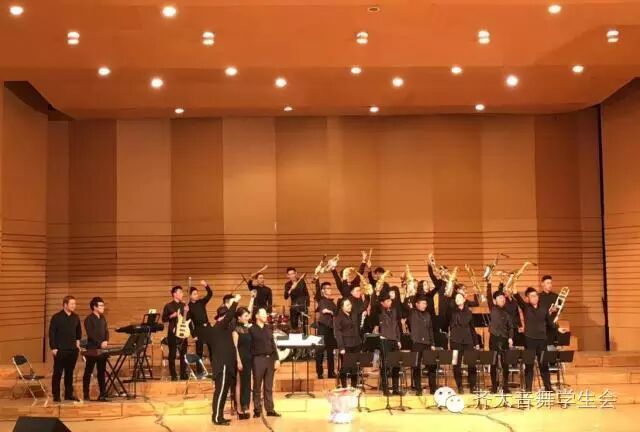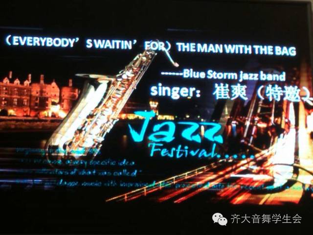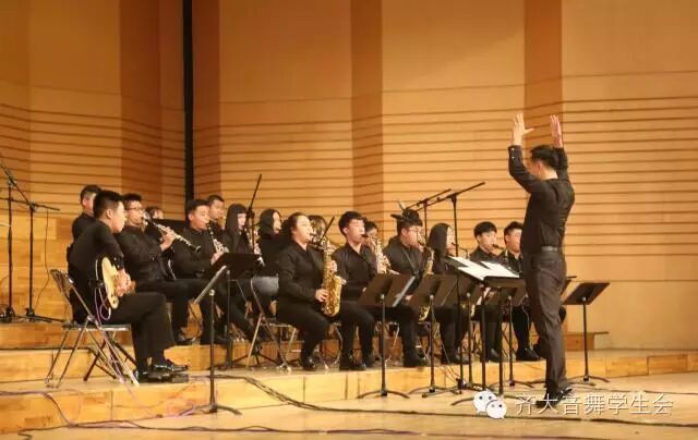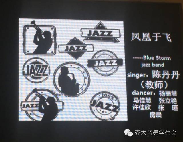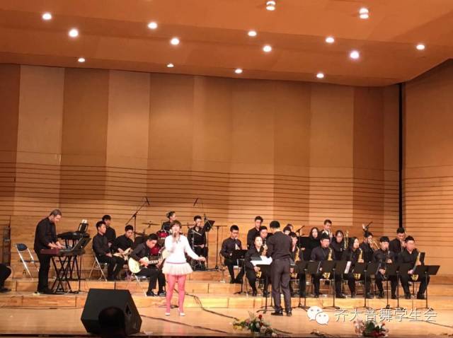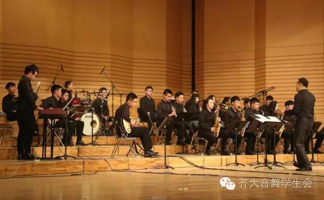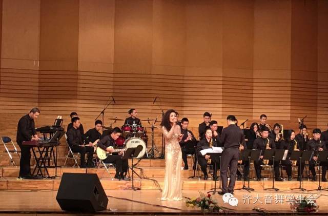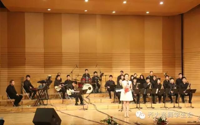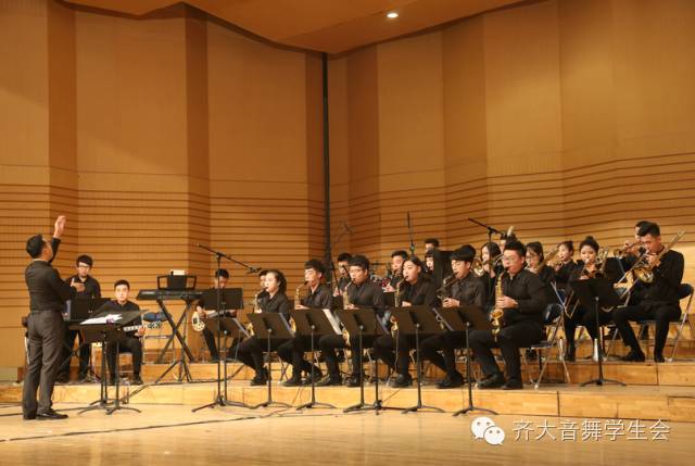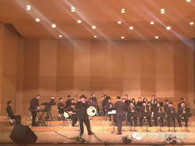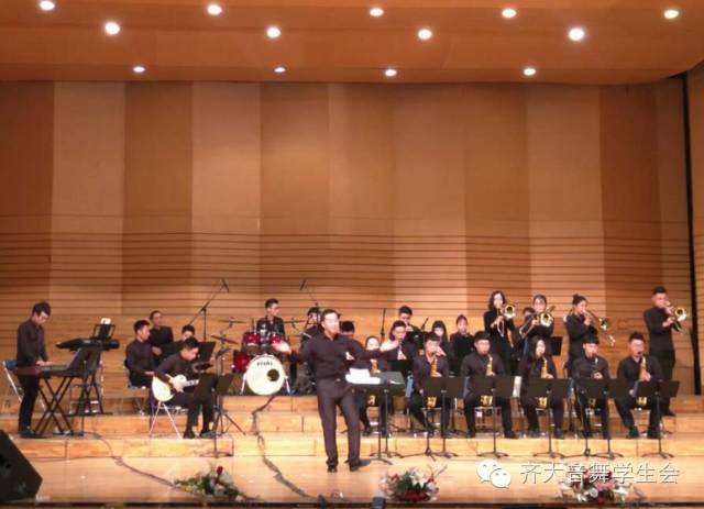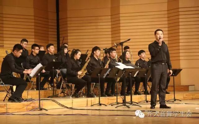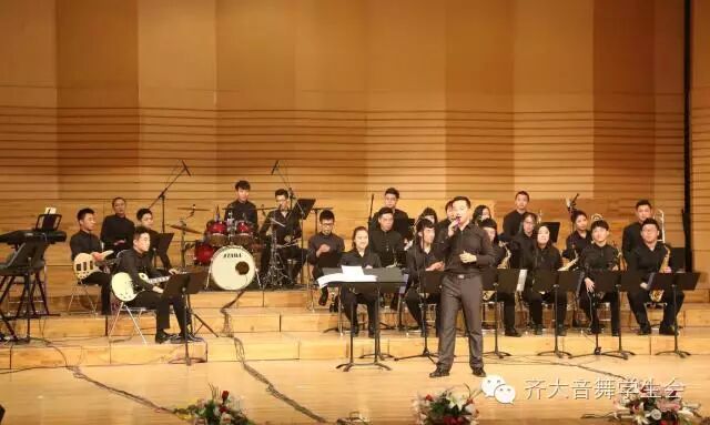 一首乐曲《DEACON JACK'S GOSPEL SHACK》作为开场,乐曲由谭金龙老师指挥,萨克斯和长号的搭配,让观众沉浸在悠扬的音乐中,感受着音乐带来的快乐。在欢快的《I WANT IT ALL》过后是陈丹丹老师演唱的《FEELING GOOD》,她清澈嘹亮的歌声唱出了对生活的向往与憧憬。 《DEACON JACK'S GOSPELSHACK》 《I WANT IT ALL》 《FEELING GOOD》演唱者:陈丹丹(教师)陈丹丹老师带来的第二首歌曲《YOU'VE GOT A FRIEND IN ME》,她的歌声与爵士乐的重金属相结合,把幽默滑稽的歌曲完美的展现给观众。谭金龙老师在音乐会期间简单的给大家讲解了爵士乐的知识,观众听的津津有味,真正意义上懂得了爵士乐。《YOU'VE GOT A FRIEND IN ME》演唱者:陈丹丹(教师) 《SMACK DAB IN THE MIDDLE》特邀嘉宾我校毕业生崔爽带来的乐曲《SMACK DAB IN THE MIDDLE》,她独特的嗓音使观众沉醉其中,赢得观众阵阵掌声。乐曲《JINGLE BELLS》是最为人们熟知的圣诞歌曲,曲子本身节奏欢快,而且整个乐队又将之以爵士乐的方式重新演绎,使人耳目一新,熟悉的旋律令全场观众与之拍手互动。《(EVERYBODY'S WAITIN'FOR)THE MAN WITH THE BAG》演唱者:崔爽(特邀) 乐曲《JINGLE BELLS》中国爵士歌曲三首《凤凰于飞》歌声舒缓悠扬,仿佛将观众的思绪拉入幽深的丛林,紧接着曲风欢快,配以舞蹈演员轻快的步伐,使观众们仿佛身临其境,自己就是那飞翔的凤凰。《夜来香》以哼唱方式开头,仿佛将观众们带入上世纪30年代上海百乐门富丽堂皇的奢华情境中。熟悉的旋律再次在耳边响起,勾起童年时期对此类影视作品的回忆。《玫瑰玫瑰我爱你》是上世纪30-40年代知名的国语歌曲,旋律轻松明快,奔放昂扬,加上现场舞蹈生们具有时代感的舞姿,给整个晚会增添了新的活力。中国爵士歌曲三首《凤凰于飞》 《夜来香》《玫瑰玫瑰我爱你》演唱者:陈丹丹(教师)郑智娇 蒋亚楠伴舞:杨丽慧 马佳慧 张立艳 许佳欣 张瑄 房晨乐曲《VIRTUAL INSANITY》此曲汉译为《错乱的疯狂》,架子鼓和萨克斯的重音突出了乐曲中疯狂的感觉,使观众们精神振奋,达到音乐会的高潮。孙博老师给大家带来了歌曲《COME FLY WITH ME》,精彩动人的演唱将本次晚会推上一个高潮。乐曲《VIRTUAL INSANITY》 歌曲《COME FIY WITH ME》演唱者:孙博(教师)最后,爵士大乐队的《RUNAWAY BABY》作为本场晚会压轴节目,结束了本次精彩的晚会。乐曲《RUNAWAY BABY》齐齐哈尔大学音乐与舞蹈学院举办此次爵士音乐会不仅给观众展示我院爵士乐的实力,更是让大家了解了爵士乐表演的精彩,让爵士乐走进大家的生活。同时,也给爵士乐队的每一位成员一个展现自我的机会与平台,了解齐齐哈尔大学音乐与舞蹈学院爵士大乐队。