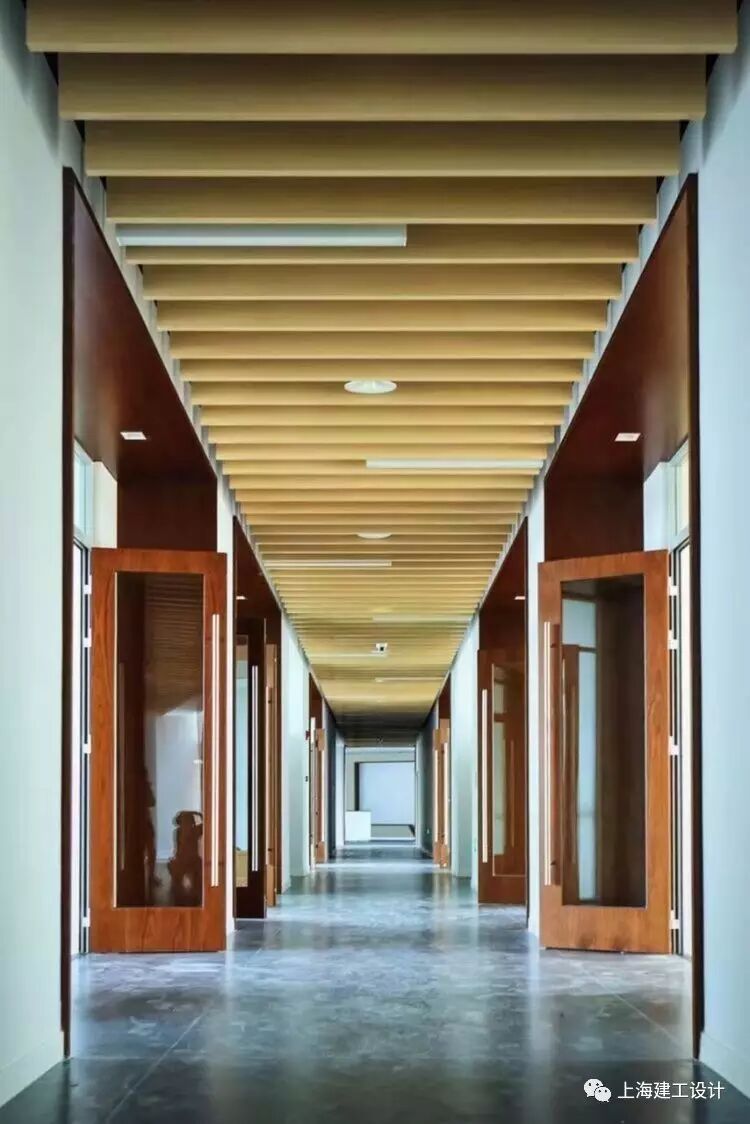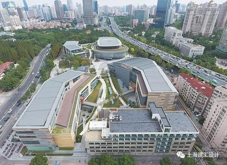 上海国际舞蹈中心有将近50%的建筑面积都设于地下层,在新建的1~4号楼地下设有一个大地库,为地下二层,其地下一层设有训练房、食堂等功能用房,地下二层为地下汽车库和设备用房。为解决有氧排练中的空气循环,提高地下空间室内空气品质,采用了 18 项针对性技术措施,为舞蹈演员、学生提供最好的空间,淋漓体现了“文教结合”的理念。