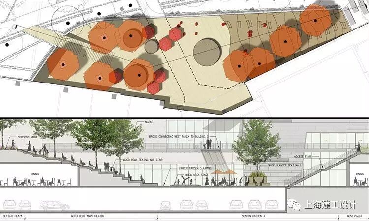 每座新建的大楼都设置了各自的下沉式花园,可在花园中进行与其功能内容相关联的各类活动。