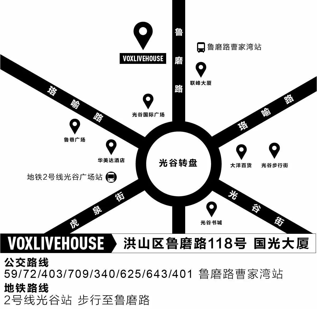 地址:武汉市洪山区鲁磨路118号国光大厦VOX LIVEHOUSE