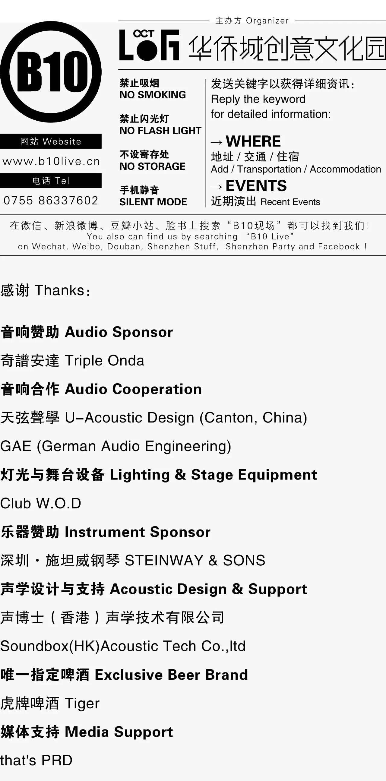 Please send the following information to midori@b10live.cn at least ONE DAY before the concert:
