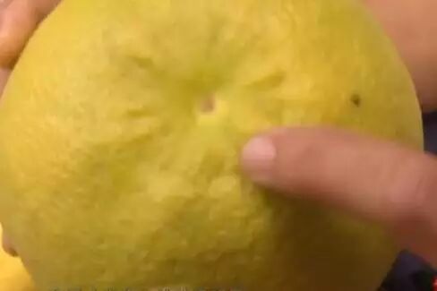 底部:沙田柚底部有一个貌似金钱状的印环,有了这个“金钱圈”那就是正宗且好吃的印记,甜度比较大。
