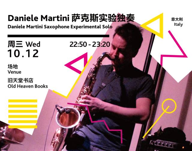 Daniele Martini对技术扩展和萨克斯与电子设备的交互效果进行了深入的研究——从调制过的带效果的萨克斯声,到扩音器的反馈嚣叫,他使用所有可能的素材来进行即兴创作。With his cutting-edge solo project he displays a deep research of extended techniques and interaction of the saxophone with electronics, Daniele Martini uses anything from the modulated sounds of the saxophone with effects to the amp’s feedback as timbres to create instant composition.