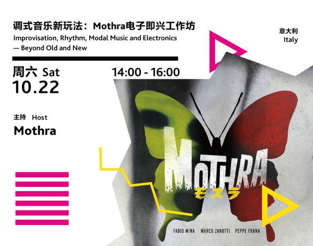 现场配有翻译 With English-Chinese interpreter在这个工作坊里中,Mothra试图通过结合古老元素和现代技巧,来探索音乐表达上新的可能性。通过即兴,我们与“当下”发生关系。而我们该以什么样的方式更深入地探索它,并从中体会音乐里的自由呢?调式音乐,这种虽然古老却仍然广泛地在世界各地被演奏的音乐,是否能成为一种创造新内容的工具呢?律动和节奏在这当中又扮演了怎样的角色?我们如何在即兴里把这些元素结合起来?The workshop intends to explore new expressive possibilities in music combining ancient elements and modern techniques.The improvisation, the way to be in touch with moment, how can we develop this, learn the freedom in music? Can the modal music, an old but still played in many countries offer a tool to create something new? And the rhythm? How can we relate to it, in improvisation?These are some questions the three musicians will try to answer to.