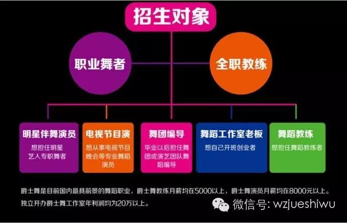 作为修身美体的首选之舞,爵士舞近年来十分流行、新潮的原因在于其简单易学、强调个性和女性形体美(包括胸部、腰腹部、臀部等),反复练习就能轻松拥有S身材。于是市场孕育了一个新兴的职业,那就是高级爵士舞教练!