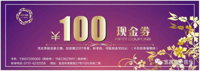 凭此券报名2017年春、秋季爵士舞、肚皮舞一期课程,