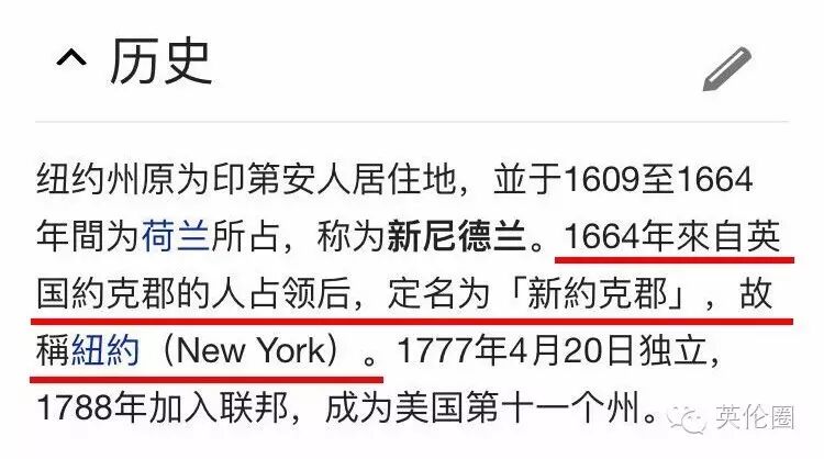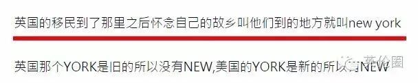 正是因为这样的普遍情况,是不是很多人都以为纽约(New York)跟英国约克(York)也是这样的简单加“新”式命名?各种问答网站的版本真是花样翻新层出不穷▼