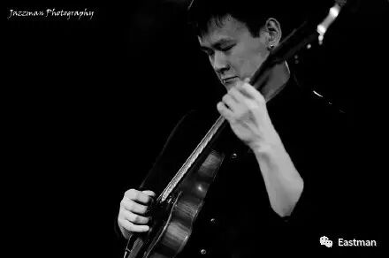 张雄关:照片里的那把Eastman是我自己的琴,型号是AR905CE。因为我父母住在温哥华,每年夏天都会去那边住一段时间。当时一起去多伦多,到一家琴行里试琴,当时说实话还不知道Eastman,只是试了试琴,当时有特别想要那种大的空心爵士琴,正好那有好几把,挨个弹了觉得Eastman的那把还是非常不错的,然后买了就一直用到现在,那也是我的第一把爵士琴。