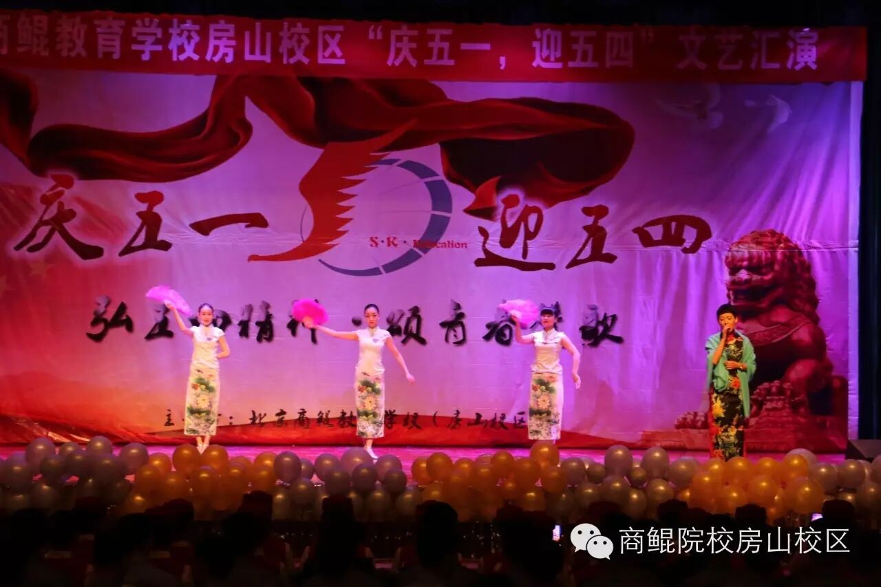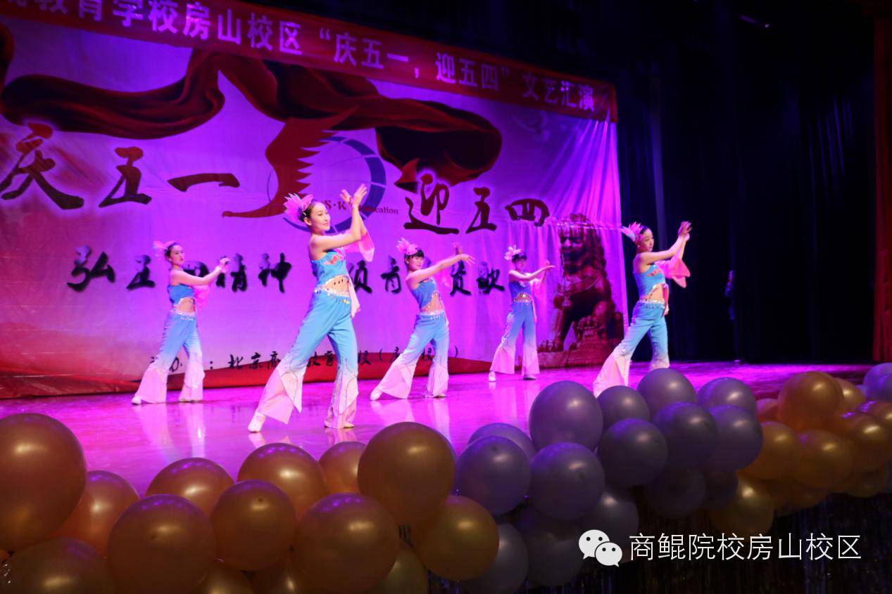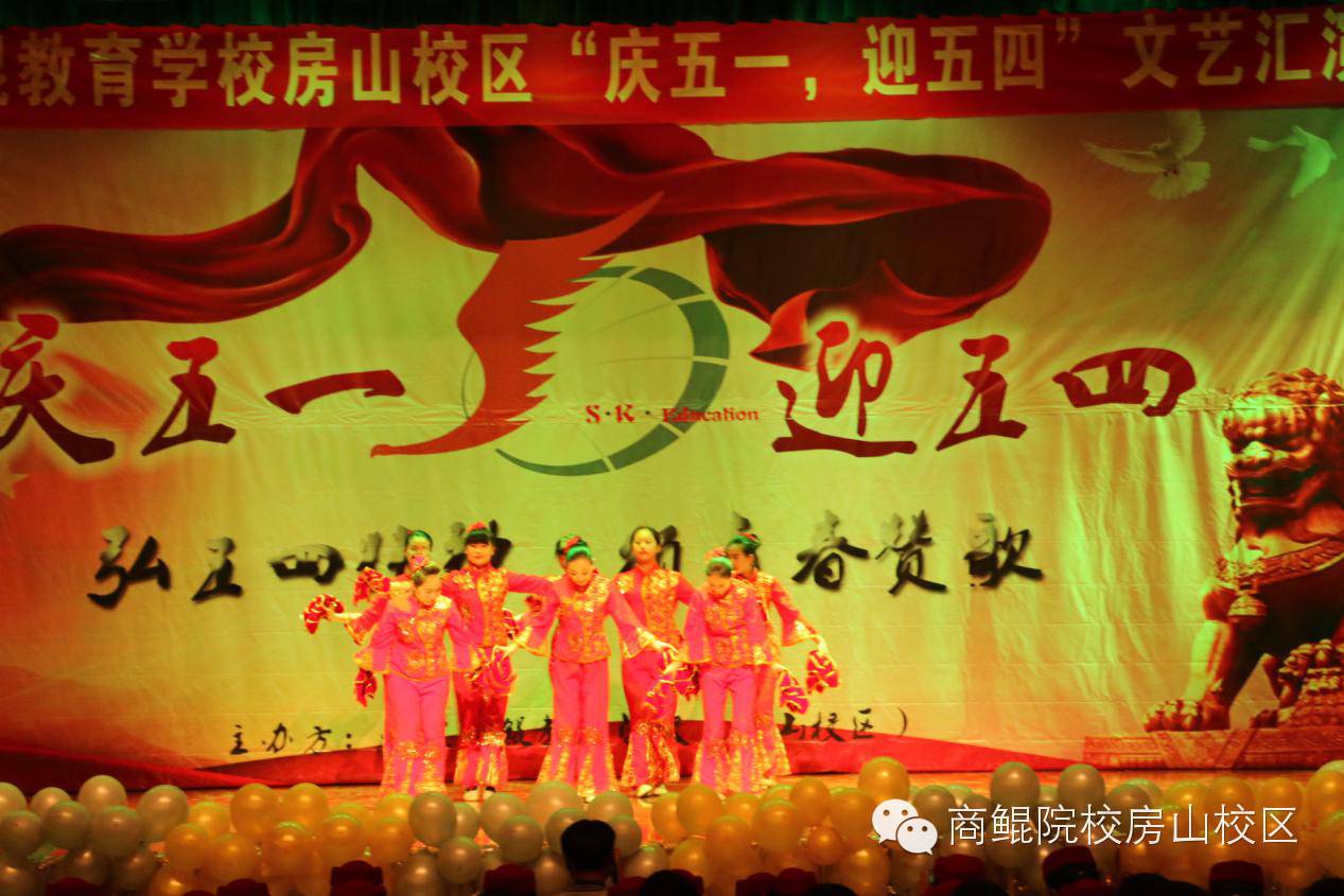 开场舞由王斯副校长等老师们带来的热情欢快的舞蹈《开门红》将汇演的神秘面纱缓缓拉开。主持人闫利、王钰、赵启超、孙雪宣布北京商鲲教育学校(房山校区)“庆五一,迎五四”文艺汇演正式开始。