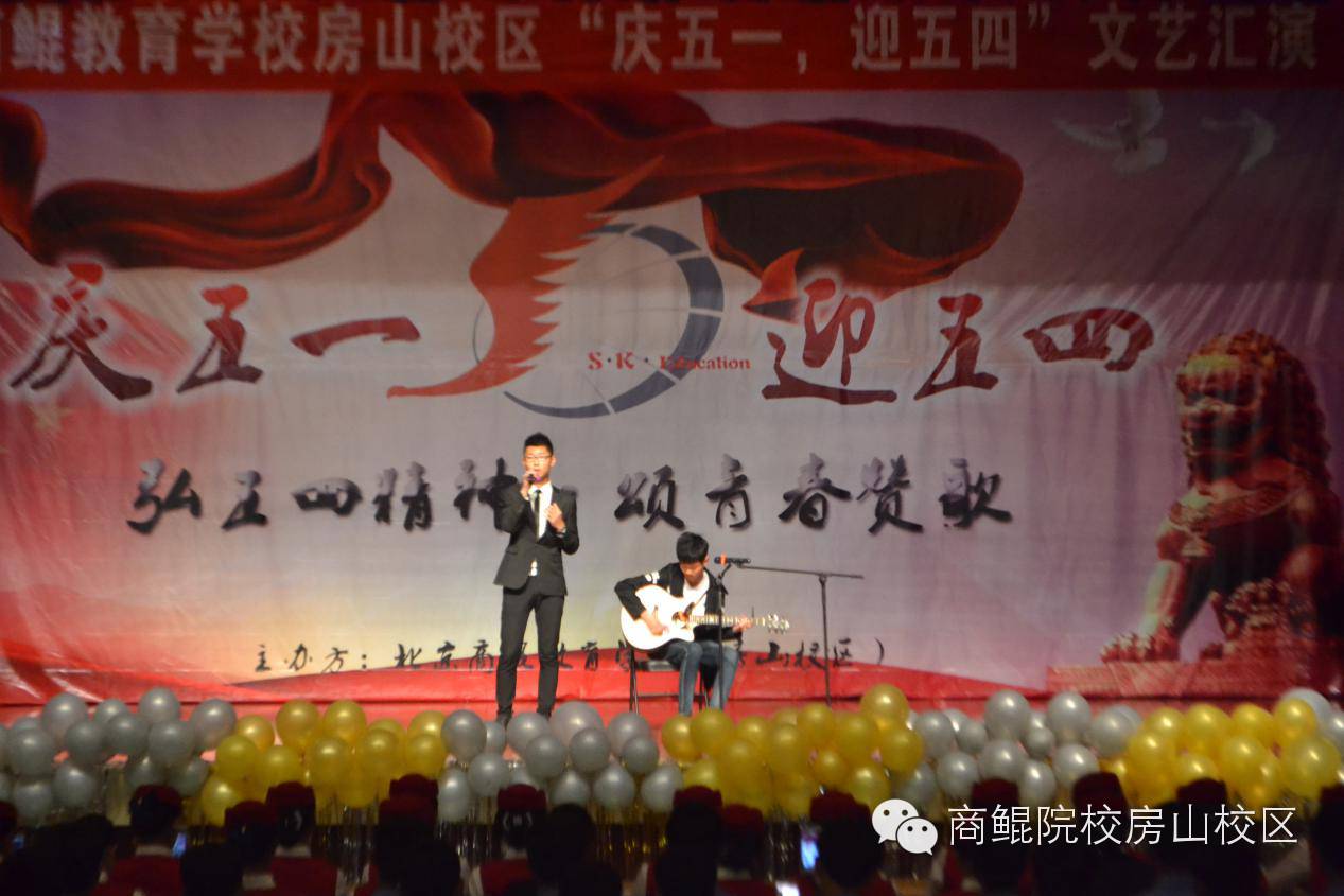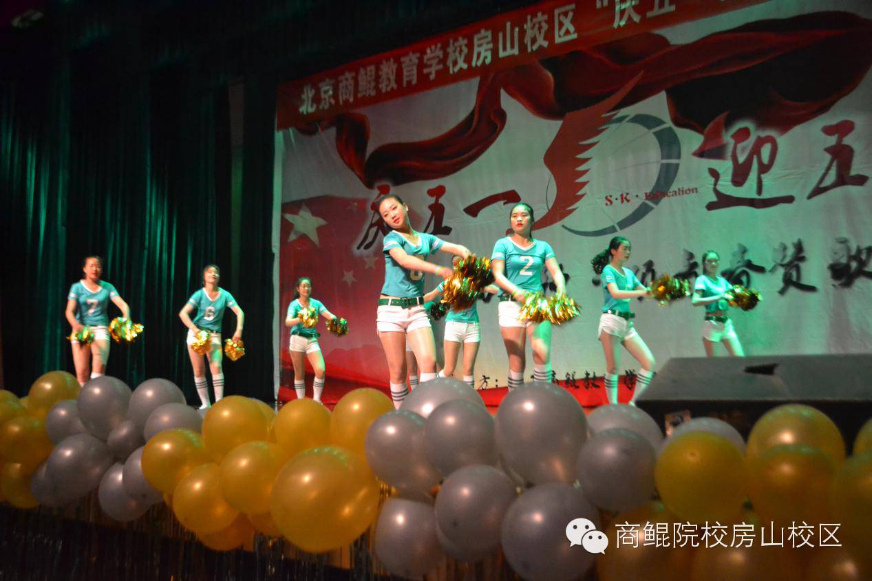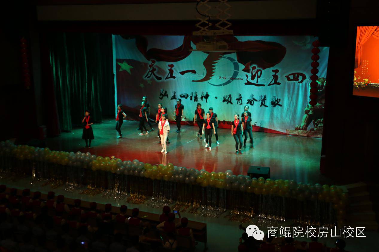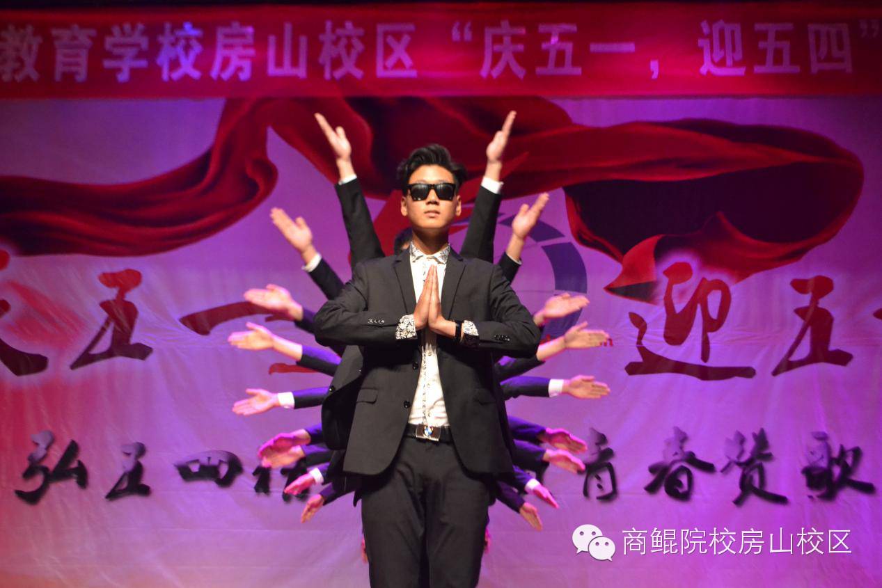 开场舞由王斯副校长等老师们带来的热情欢快的舞蹈《开门红》将汇演的神秘面纱缓缓拉开。主持人闫利、王钰、赵启超、孙雪宣布北京商鲲教育学校(房山校区)“庆五一,迎五四”文艺汇演正式开始。