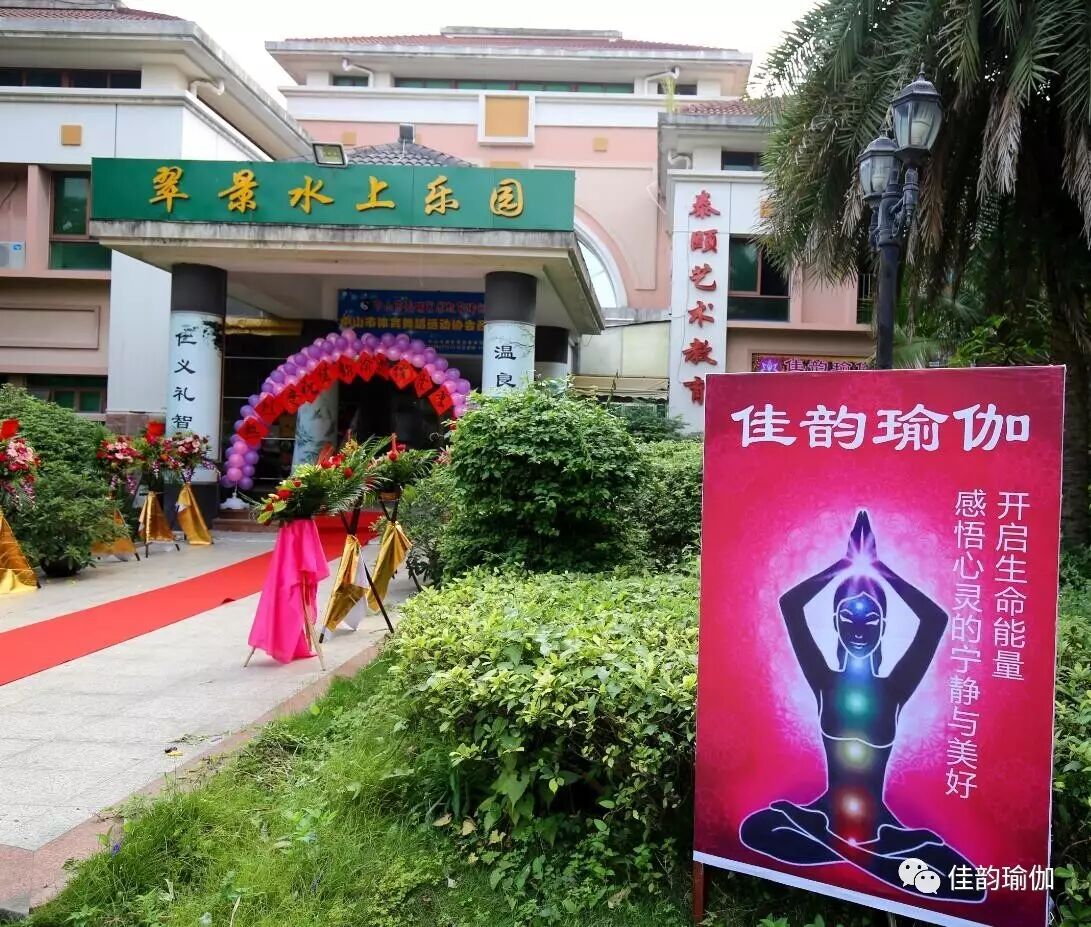 佳韵瑜伽翠景店开业庆典仪式就在翠景康体园举行了,一早,一楼大堂处美丽的气球拱门在亲朋好友相送的花篮下格外的漂亮,鲜红的纸张写着“热烈庆祝佳韵瑜伽隆重开业”,扶梯上、课室里尽是喜庆的气球。