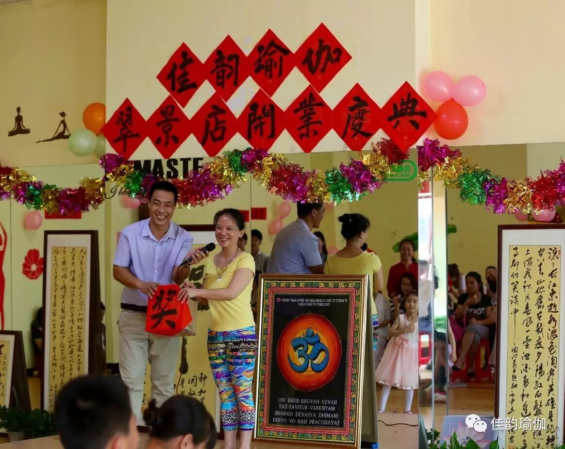 在两个小时的欢声笑语中,在欢快的音乐节奏下,主持人宣布佳韵瑜伽翠景店开业庆典正式结束了。