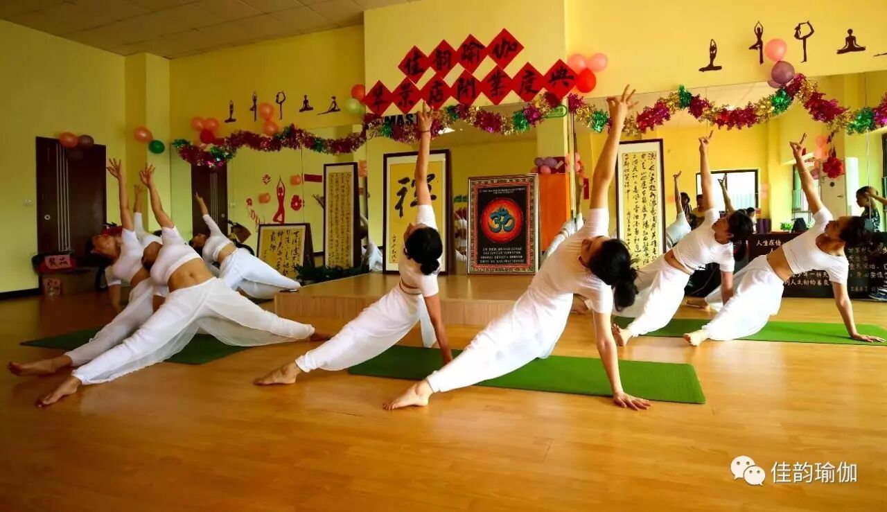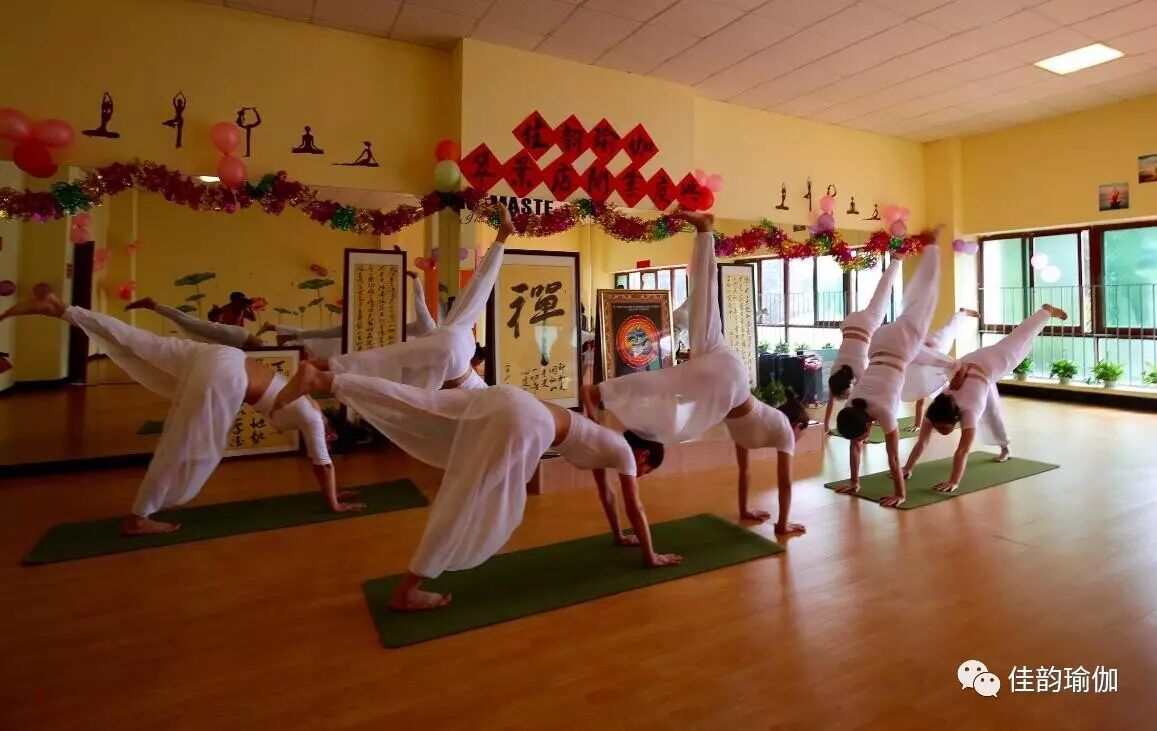 让现场一下子就嗨起来了,大家满身是汗,非常舒服。来到瑜伽馆看表演怎么能少的了瑜伽呢。来了,重头戏来了,佳韵瑜伽第一期教练班的同学们来了,她们穿着洁白的瑜伽服,