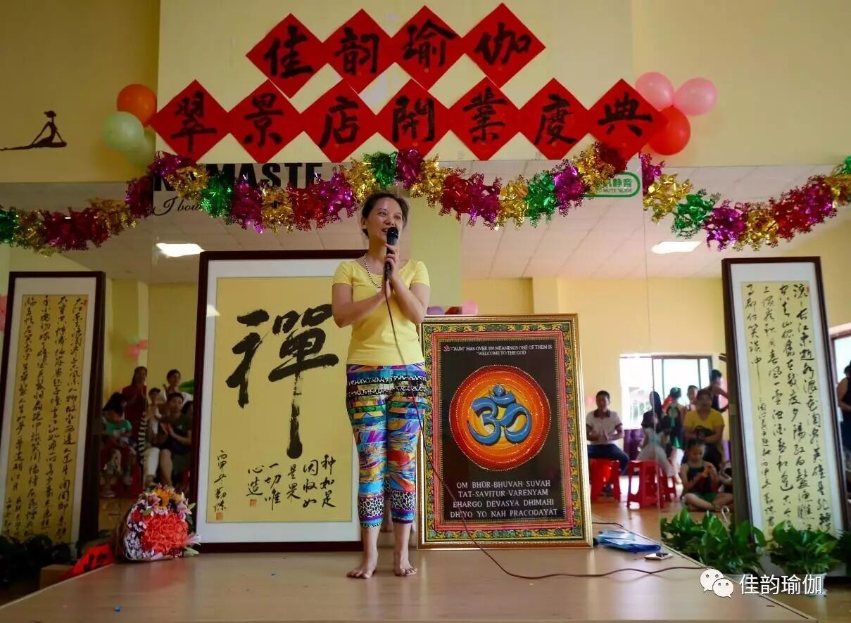 在主持人宣读完开场词后,由佳韵瑜伽创始人伽韵老师致欢迎词。