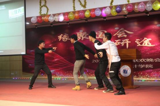 此外,深情的朗诵、酷炫的双节棍表演、传统经典的打渔杀家选段等节目,展示了国会学子的多才多艺与独一无二的风采。两位2014级的校友更是登上舞台,深情演唱《千里之外》,表达了他们虽在千里之外、却不曾忘怀母校的深情。今年晚会一大特色是新增微信上墙环节,现场观众实时对节目进行评价,台上节目精彩纷呈,微信墙的互动也是你来我往,增加了欢乐的气氛。“让我们红尘作伴,活得潇潇洒洒”,在全体大合唱《当》的歌声中,2个小时的联欢晚会落下了帷幕。