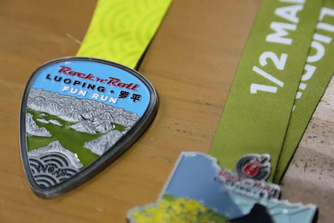 2018罗平花海摇滚马拉松共设计有两块奖牌,一块将颁发给完成半程马拉松的参赛选手,另一块则属于完成欢乐跑(12公里)或亲子跑(5公里)的参赛选手。