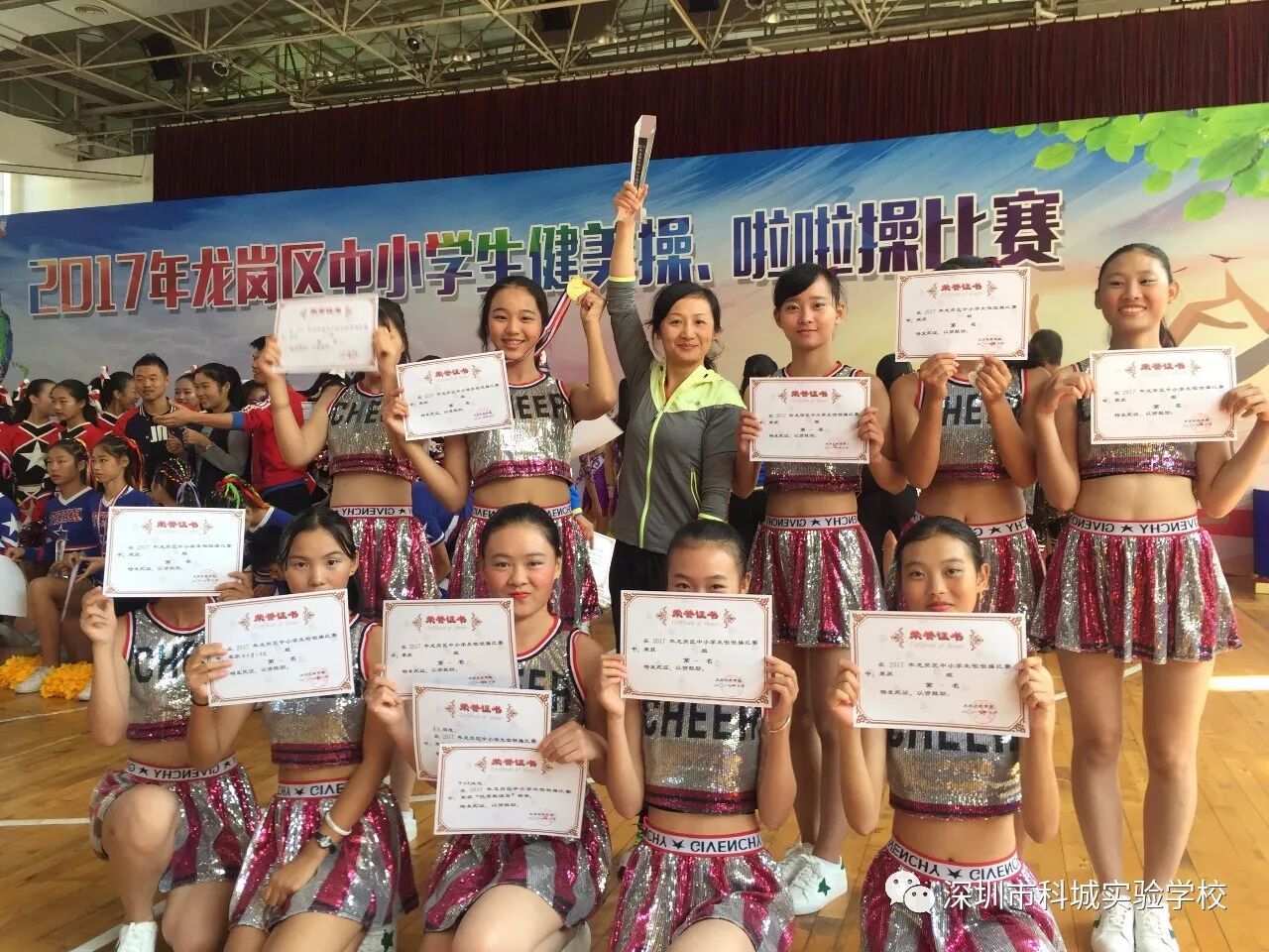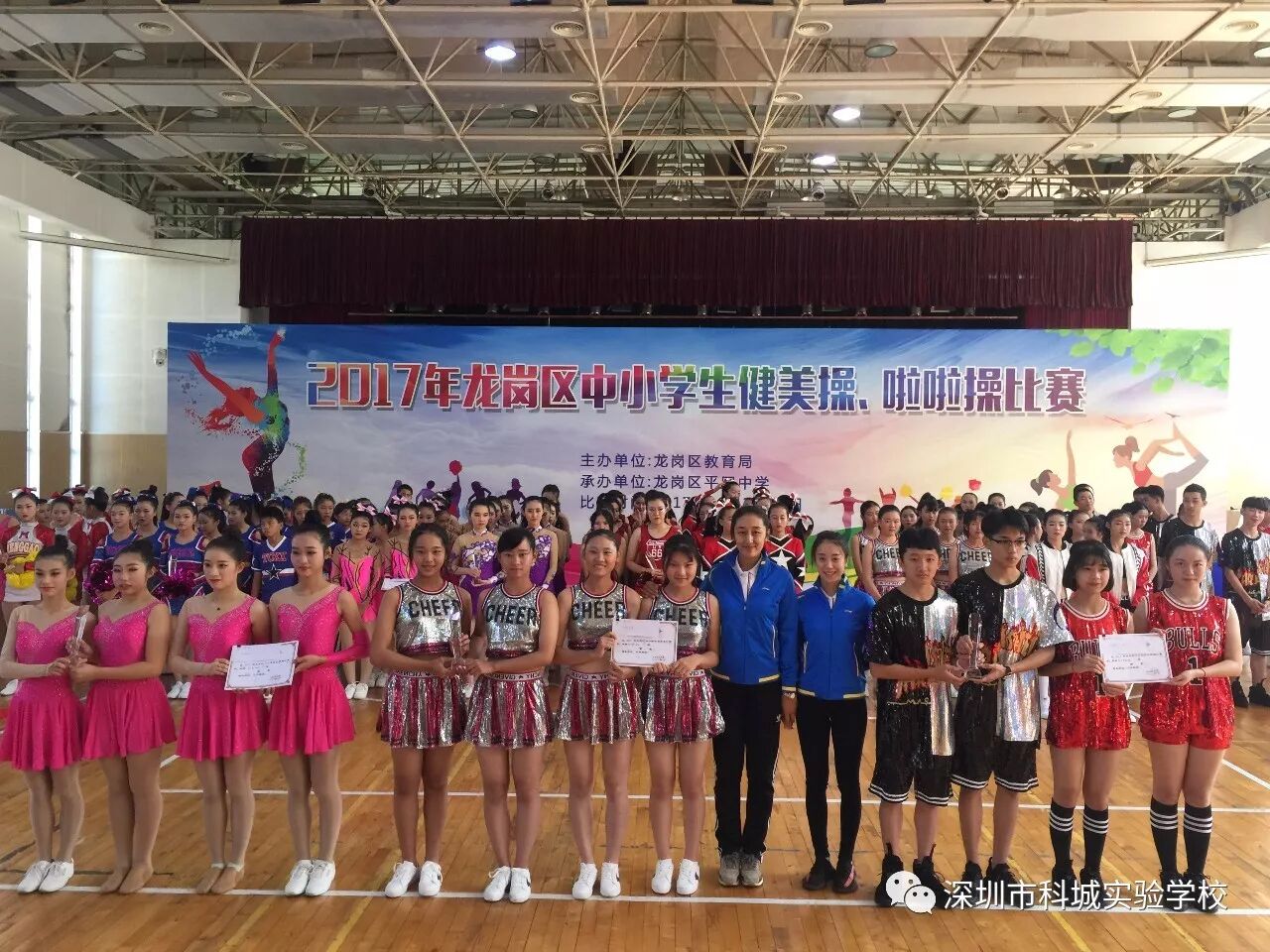 比赛中我校两支舞队力压群雄,一路过关斩将,最终勇夺高中组爵士舞自选动作第一名和高中组街舞自选动作第一名,两队队员荣获“啦啦操之星”称号,秦庆、熊昭勇两位老师双双获得“龙岗区优秀教练员”称号。