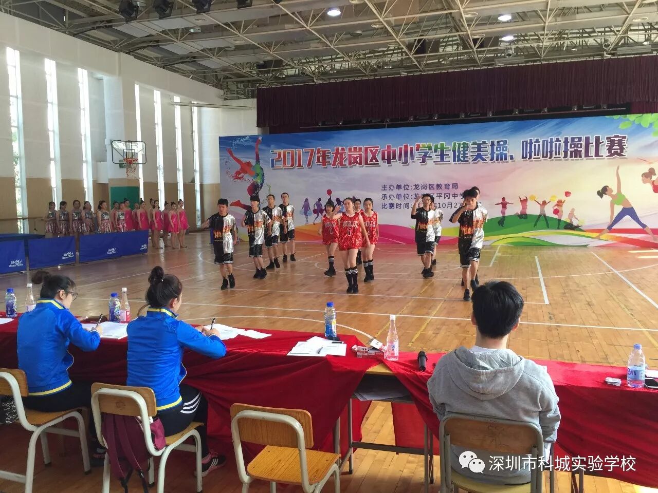 这次比赛整个龙岗区中小学校一共有53支队伍参赛,真可谓人才济济,群雄争霸。其中高中组17支队伍角逐健美操、爵士、街舞、啦啦操等奖项。比赛中,各参赛队全力展示,动作精致到位、技术高超,从打扮、化妆、动作编排上各出奇招,将体育舞蹈之美展现的淋漓尽致,使得赛场气氛活力四射。无形中也给我校的老师和队员们带来了不少的压力。但在赛场上是用实力说话的,我校的队员们调整心态,迎难而上,用精湛的舞技征服了评委,获得了兄弟学校的掌声,用实力证明了自己。