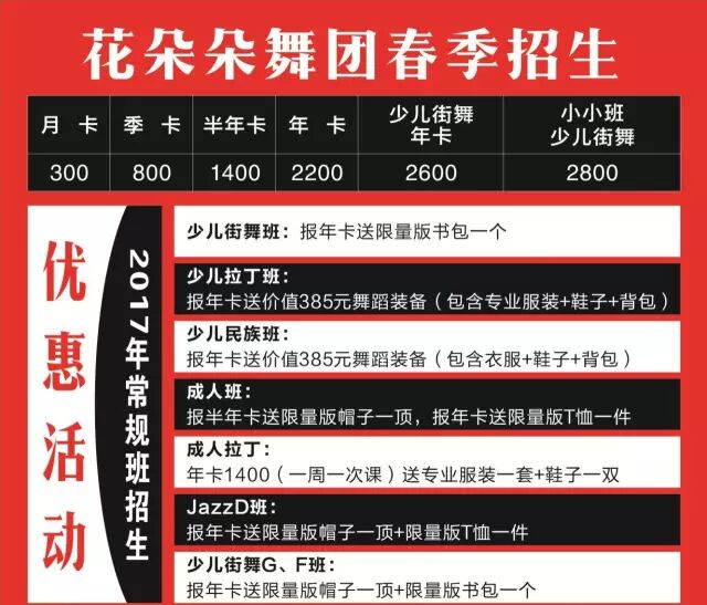 花朵朵舞团,也是唯一一家最早引进少儿爵士舞课程,具有最专业最有经验的一个培训基地。