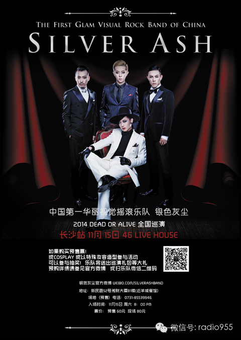 银色灰尘(SILVER ASH)乐队组建于2000年,这支乐队是中国第一支视觉系摇滚乐队。银色灰尘的音乐制作方向是一种融汇了迷幻音乐、英伦摇滚、哥特摇滚及传统硬摇滚等丰富元素的全然不同的新乐队音乐,它应该同时拥有宏大的背景/凄美的旋律、强劲的吉他和声、迷幻的意境和超然的理念。