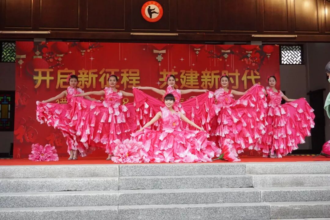 舞蹈《盛世花开》拉开演出序幕,演员们笑靥如花,鲜艳灵动的裙摆描绘出一幅新年喜庆百花齐放的画面。