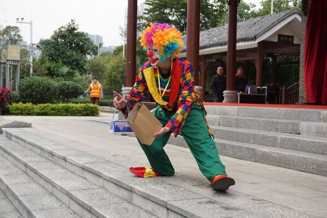 刚送走猪八戒,殊不知小丑又到。红彤彤的鼻子、鲜艳的大嘴巴、五彩缤纷的爆炸头,逗得观众们哈哈大笑。不仅如此,小丑还下到观众席教大家转盘子,并邀观众上台“教学”,各种滑稽动作让大家乐开了花。